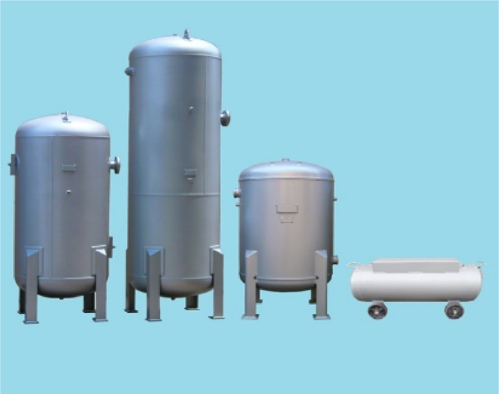 Air Receiver Tank DESCRIPTION Vertical Air Receiver Tank 40 Liters ~ 10,000 Liters (150 PSI & 220 PSI) High Pressure Air Receiver Tank (580 PSI) for PET Bottle Vertical Vacuum Tank (-14.5 PSI) Horizontal Air Receiver Tank 30 Liters ~ 500 Liters